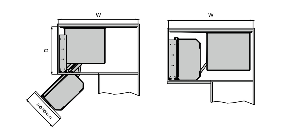 | MX870(L/R) | 900 | (868-928)x535x585 | Tamanho mínimo da porta: 400mm | 25-30KG |